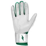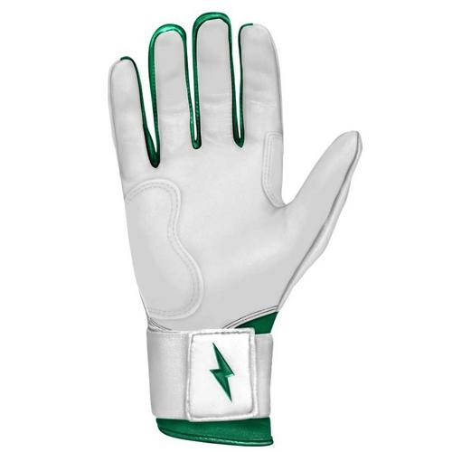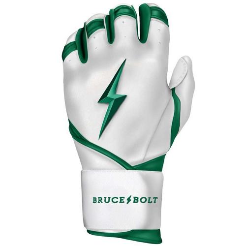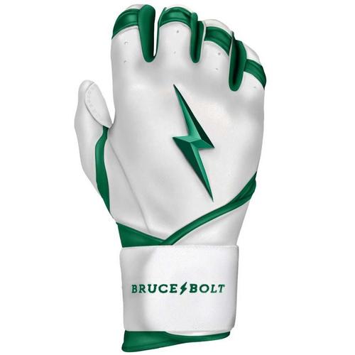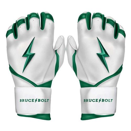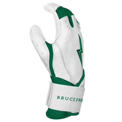 The Bruce Bolt Chrome Series batting gloves are made of the highest quality leather in the world, making them easily reliable for every game. The long cuff design provides additional support and protection, allowing players to swing with confidence. The Cabretta leather is incredibly soft while maintaining durability, and don't get hard or stiff throughout time. The ergonomic, reinforced design of these Chrome Series batting gloves will make every hitting experience off the charts.