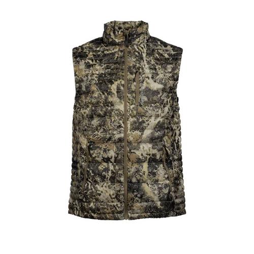The outer 20D DWR-treated fabric keeps feathers in and moisture out. Paired with a lofty 850 FP Granger DWR-treated down, this vest will keep you warm and dry during low and mid-levels of activity in the field. Graphene filled side panels maintain loft and enhance thermal conductivity, keeping you comfortable when temperatures swing throughout the day.