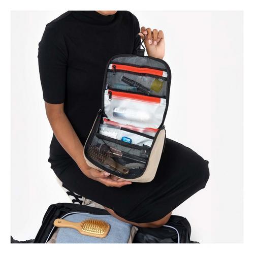 Say goodbye to unpacking at every hotel stop. The Co-Pilot is a 3L hanging toiletry case designed with organized travel in mind. Featuring mesh and clear zip pockets, four slip compartments, a removable wet pouch, and a hook to keep your essentials clean and close by, this pouch is punching way above its weight. Water-resistant materials will keep your stuff clean and dry no matter how wet the bathroom counter gets.