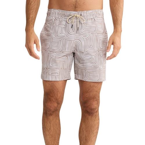 Men's Fair Harbor The Bayberry Swim Trunks offer a heritage look with modern comfort. Featuring a 7-inch inseam, sun-faded fabric, and a tapered leg, these trunks combine tradition with functionality. The classic fit, drawstring elastic waistband, ultra-soft BreezeKnit™ liner, stretch fabric, and water-draining pockets make them a modern essential.