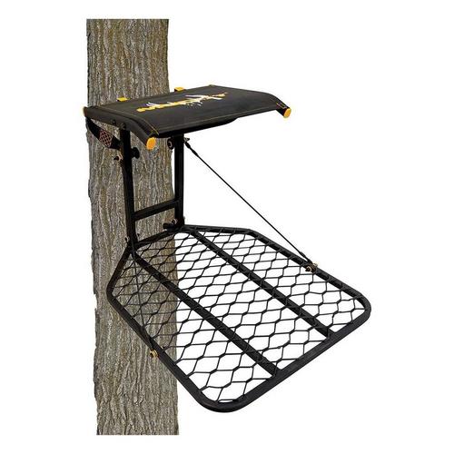 The Boss from Muddy Outdoors features a Flex-Tek seat for all day comfort with the ability to flip the seat back for full platform use when needed. The Boss also features wide stance platform with Silent straps, with no metal on metal contact.