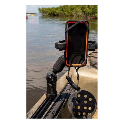 This version of the RotoGrip Phone Holder includes a Universal Smartphone Harness and Tether, LockNLoad Mounting System, and a 5” extension arm for limitless adjustments. The LockNLoad Mounting System is compatible with all YakAttack GearTrac, MightyMounts, and most other factory installed kayak track systems.
