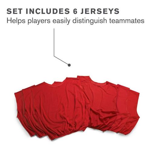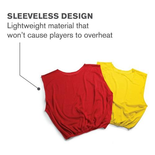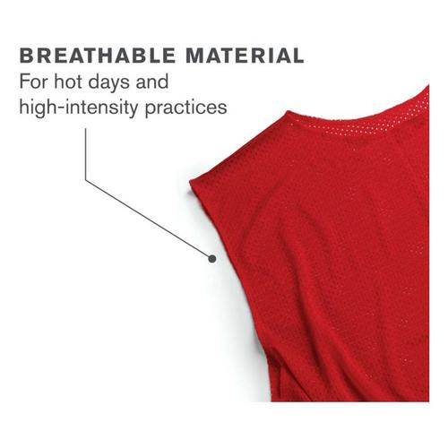 The SKLZ Adult Mesh Jersey is a vital training tool when practicing team sports that feature two teams. Built with a lightweight, breathable design, this red mesh unisex practice jersey helps players easily distinguish their teammates, and the other 'team', while staying cool. Over-sized arm openings ensure ease of movement.