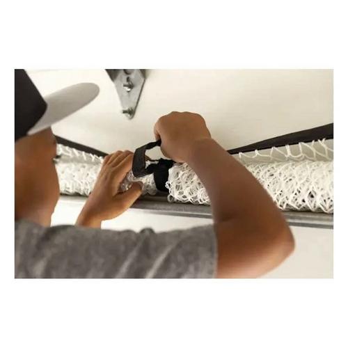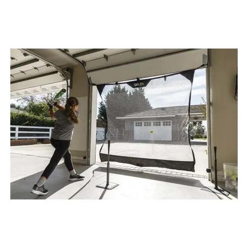 The Suspended Sport Net allows athletes to practice swings at home. Designed with a large 7.5’ x 7’ net, attaches to most garage doors or open spaces with connection points that are approximately 8’ in width. The net has a fiberglass bottom pole that provides structure and reduces kick back to better collect balls during practice. The Suspended Sport Net allows athletes to hit baseballs, softballs, or golf balls and spend less time picking up the balls and more time training. The lightweight net can easily be rolled up and stored away while still allowing garage doors to function properly. The connection points are easy to setup and secure enough to take on hard hits. Built durable so it can hold up through seasons of training.