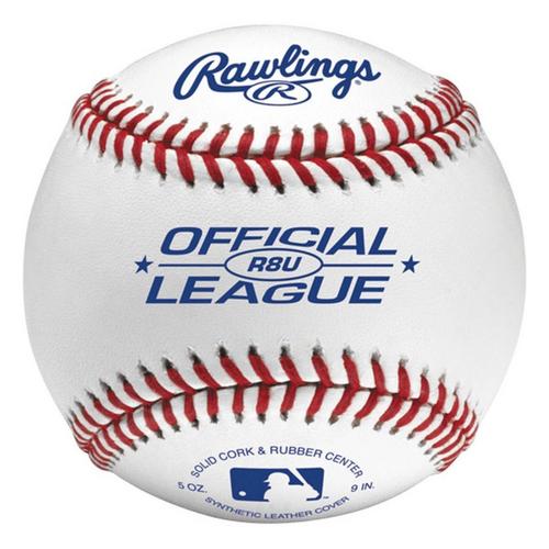 The durable white plastic bucket with clear lid holds 24 R8U Recreational Baseballs. The balls feature a solid cork and rubber center with a synthetic cover.
