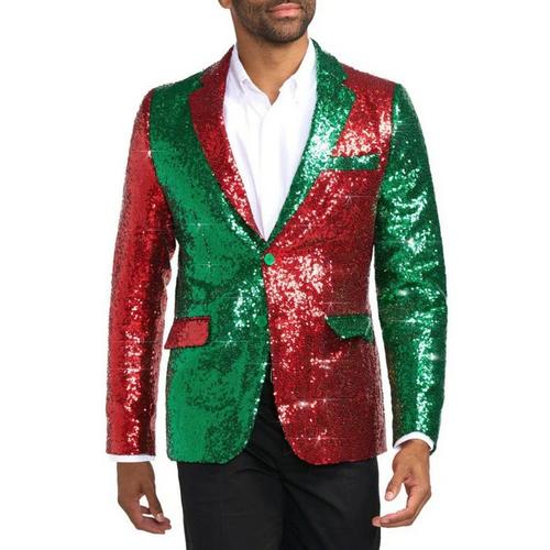 Men's Tipsy Elves Red And Green Sequin Blazer