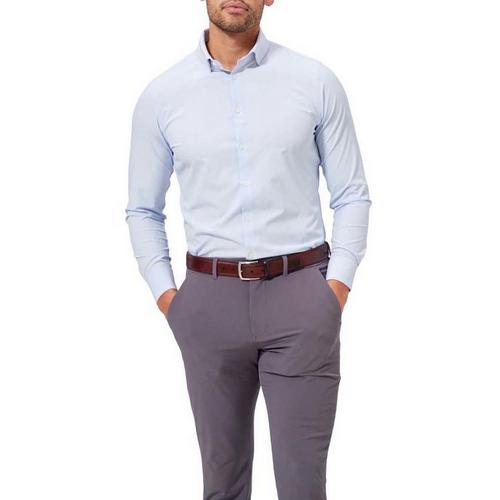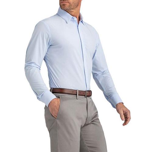 Make business casual look professional with a Men's Mizzen+Main Leeward Long Sleeve Dress Shirt. This Mizzen+Main long-sleeve shirt offers premium performance fabric stretchy material to maintain a pressed wrinkle-free look all day long. The button-down collar keeps your neckline clean and sharp without having to worry about folds or creases. A curved hem bottom allows for an untucked more casual look to this Mizzen+Main long-sleeve as well. Look professional for any occasion with the Men's Mizzen+Main Leeward Long Sleeve Dress Shirt.