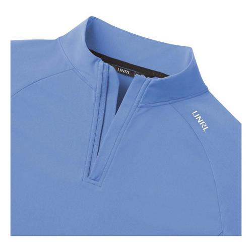 The Men's UNRL Highlands Long Sleeve 1/4 Zip is a must-have layer crafted from a high-performance fabric. This lightweight quarter zip is engineered with a tailored look, featuring contoured seam lines at the shoulders and throughout the body, ensuring a sharp appearance while providing an optimal fit. Designed for full range of motion, the raglan cut sleeves allow for unrestricted mobility, making it an excellent choice for the golf course or any active day. The breathable performance fabric offeres four-way stretch, moisture-wicking technology with odor control, and a durable collar that maintains its shape wash after wash. Complete with UPF 50+ sun protection, the Men's UNRL Highlands delivers comfort, style, and superior on-course functionality.