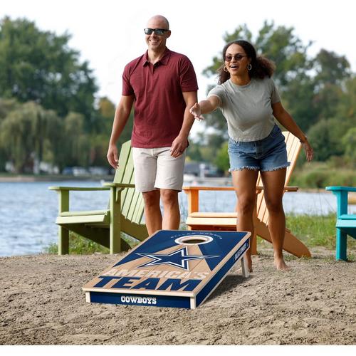 Officially licensed cornhole toss game perfect for tailgates and backyard play. Features bold team graphics and durable construction for long-lasting fun.