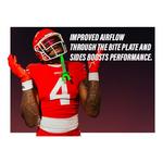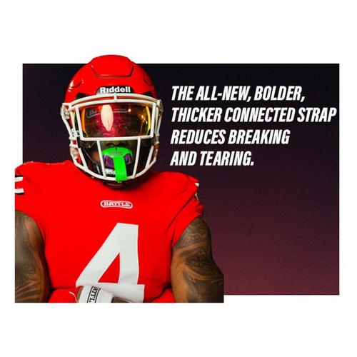 The all-new, bolder, thicker connected strap reduces breaking and tearing, giving athletes more confidence on the field. Improved airflow through the bite plate and sides boosts performance. Premium quality and striking branding come elevated with the Speed Pro.