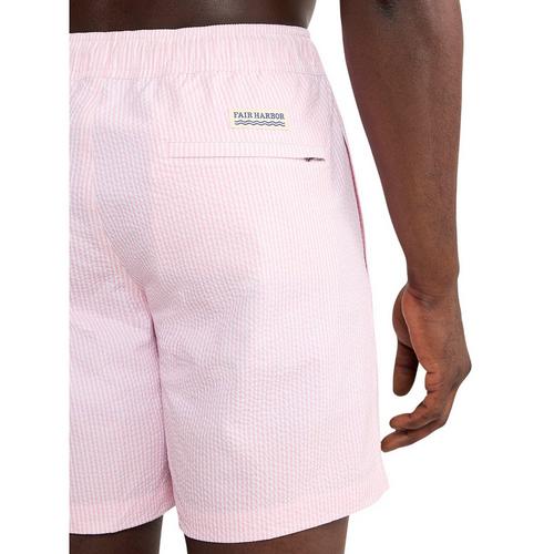 Men's Fair Harbor The Bayberry Swim Trunks offer a heritage look with modern comfort. Featuring a 7-inch inseam, sun-faded fabric, and a tapered leg, these trunks combine tradition with functionality. The classic fit, drawstring elastic waistband, ultra-soft BreezeKnit™ liner, stretch fabric, and water-draining pockets make them a modern essential.