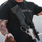 The stock allows for 1.5 inches of overall LOP adjustment (from 12.5ʺ to 14.0ʺ in 0.5ʺ increments.) It also ships with a cheek riser and two (2) 0.25ʺ shims for a total comb height adjustment of 0.75ʺ, which attaches to the internal storage compartment door. The stock has an internal storage area, complete with a quiver for six (6) .45-70 Gov’t or 30-30 Win cartridges, and an open storage compartment insert. The ELG M-LOK Stock also accepts Magpul Type 1 and Type 2 QD cups for a mounting a sling, and two (2) M-LOK slots reside on each side for further accessory mounting options such as an ammo saddle. Rounding out the stock’s state-of-the-art feature set is a sling swivel located in the bottom of the pistol grip which allows for shorter slings and a higher muzzle-down carry option.