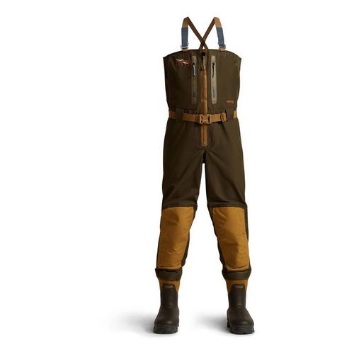 The Men's Sitka Delta Zip Waders are the ultimate pair of waders for hunters seeking unmatched quality and performance. The waders include water-resistant, zippered chest pockets for convenience and high handwarmer pockets for warmth. For comfort and protection, these Sitka waders are constructed from GORE-TEX fabric and feature a YKK AQUASEAL Zipper to keep rain and snow completely sealed out. The boots are insulated for warmth and agility and feature treading for traction on all surfaces. The waders are designed with adjustable, no-buckle suspenders eliminating the risk of suspenders interfering when shouldering your shotgun. Engineered to withstand intense use and remain functional for years to come, these waders feature reinforced knee and shin pads and are 100% serviceable by Sitka. For the serious hunter looking for unmatched quality, durability, and functionality, shop the Men's Sitka Delta Zip Waders.