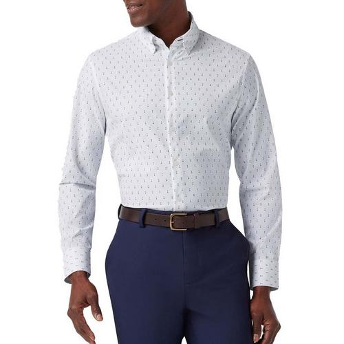 Make business casual look professional with a Men's Mizzen+Main Leeward Long Sleeve Dress Shirt. This Mizzen+Main long-sleeve shirt offers premium performance fabric stretchy material to maintain a pressed wrinkle-free look all day long. The button-down collar keeps your neckline clean and sharp without having to worry about folds or creases. A curved hem bottom allows for an untucked more casual look to this Mizzen+Main long-sleeve as well. Look professional for any occasion with the Men's Mizzen+Main Leeward Long Sleeve Dress Shirt.