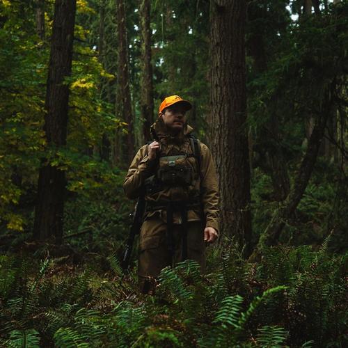 When the forecast is grim and unpredictable at best, but you still have a tag in hand, the Omen Stormshelter is a foul weather stronghold that you can trust. Built to be uncompromising in weather resistance and durability, the Omen system is the solution for mid to late-season hunts when persistent varying precipitation, wind, and low temps are the only guarantee. Our proprietary bi-component laminate construction remains extremely durable for busting the thickest PNW blackberry growth while actively resisting contamination from dirt and oil, for season after season weatherproof reliability in the field. Omen Stormshelter System is our flagship foul weather offering, being the most weatherproof, durable, and contamination-resistant kit for severe unforgiving conditions.