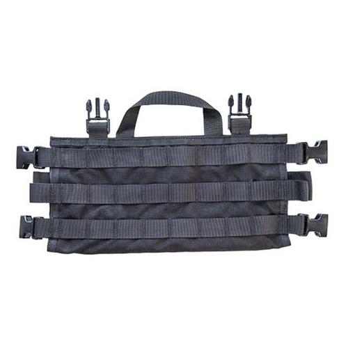 The AO Chest Rig is feature rich and low cost. The front panel is efficiently constructed to provide three rows and eight columns of PALS. The panel has side openings to store paperwork or maps. This rig also features a hook fastener panel on the back side for easy integration onto many plate carrier systems. A carry handle is sewn into the top to allow quick transport if you have to grab and go.
