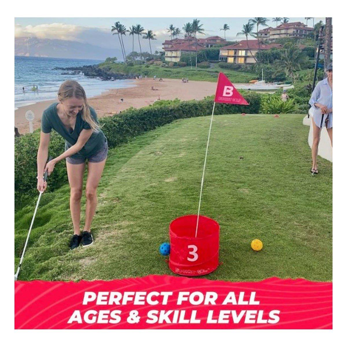 The BucketGolf Game is a great way to add some fun and excitement to your golf game. You can play with up to four players and you can easily set up the course anywhere. The buckets come with different sizes and colors, so you can customize your course to make it more challenging. The game also comes with scorecards, so you can track your progress and keep track of your best scores.
