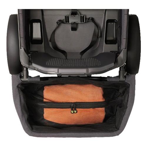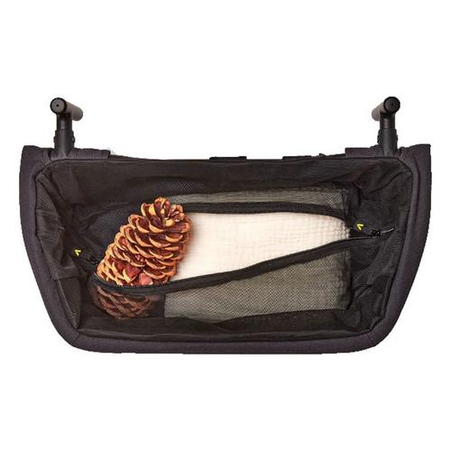 Snap on more cargo space to your All-Terrain Cruiser or All-Terrain Cruiser XL. Our lightweight aluminum and soft-sided storage basket mounts solidly into the Cruiser's two anchor points behind the rear seat. It folds for easy transport or storage without removal. The soft sided construction is removable and machine washable. A mesh zipper hood either discreetly rests on the bottom of the basket or doubles the capacity by covering clothes and other bulky items. Drink and Snack Tray and Napper both fit comfortably in this accessory.