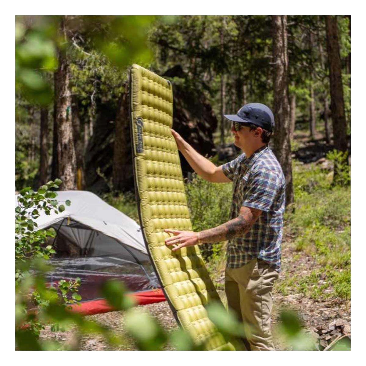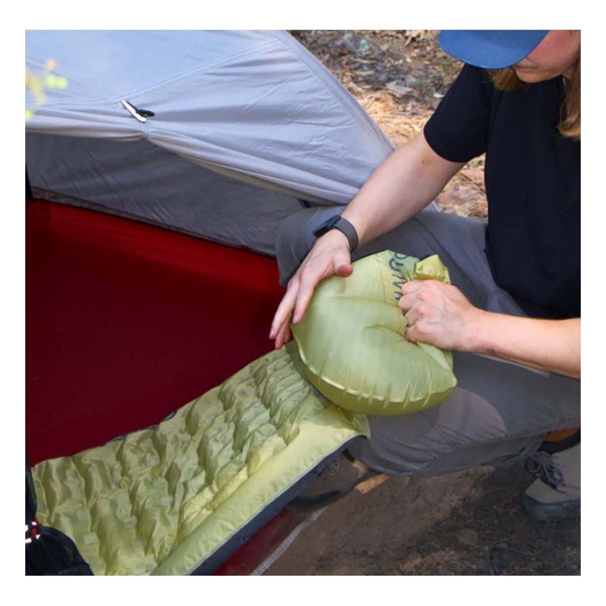 The Feather Insulated Inflatable Sleeping Pad is the ultimate in comfort and warmth. With an R-value of 3.7, this insulated pad is your go-to pad all year long. This 3-inch thick, inflatable sleeping pad is insulated with dual-plated aluminum. In addition, we have added an internal woven fabric layer to provide extra warmth, softness, and quiet - guaranteeing an incredibly comfortable and noise-free sleep. The included pump sack makes inflating it a breeze. Offered in both regular and wide widths. Our insulated pads are custom designed to be one inch wider than standard-sized sleeping pads.