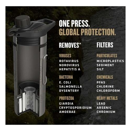 Purify. Filter. Cook. Take on any challenge with our flagship 24oz GeoPress Ti Purifier Bottle. Made from CP4 Grade 1 Titanium, it is a functional masterpiece and fits perfectly into any pack pocket. Filter and purify at virtually any freshwater source, then bring it back to camp for cooking clean water over a stove or open flame. Meticulously crafted with the expertise of industry professionals, this bottle is the ultimate tool for adventure and performance.