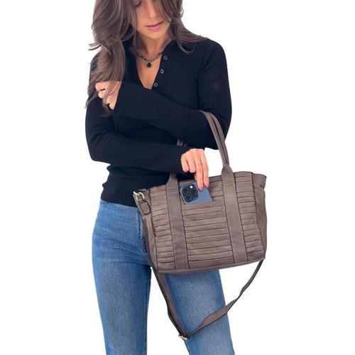 The Milan Tote in Black is the perfect mid-size tote. It features patchwork details on the exterior, along with a barely visible slider pocket. The tote has a full top zip, top handles, and an adjustable crossbody strap. The spacious interior includes a zippered pocket and two slide pockets.