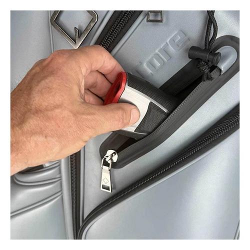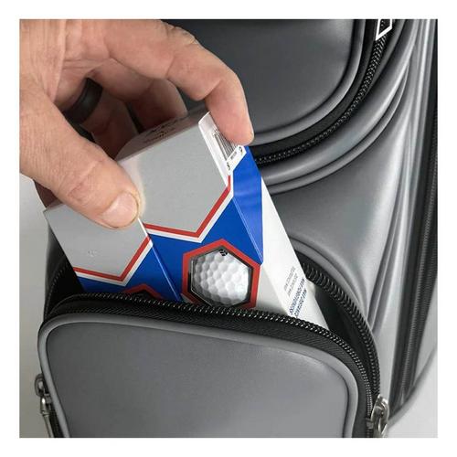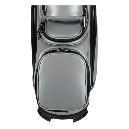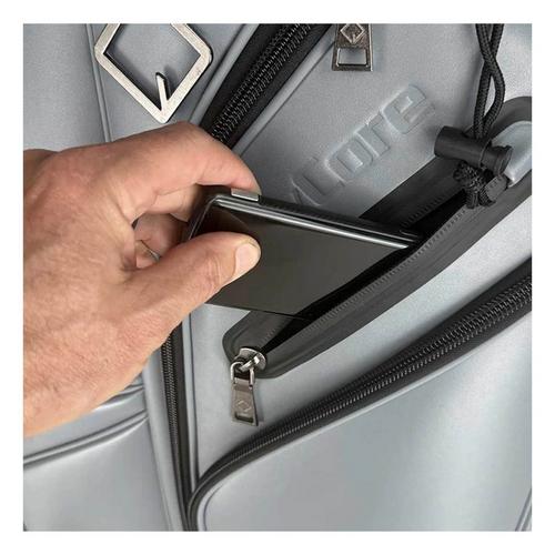 RevCore lux cart bags are crafted with foam backed tour-grade synthetic leather, oversized black alloy metal zippers and hardware with plenty of storage. Designed for golfers who predominantly use carts or push carts, the updated design features 14 way fully enclosed dividers, classic colorway options and a large putter well with no-ledge liner for large putter grips. Every inch of the new design has been improved with subtle color-matched logos, custom towel rings with glove holders and an integrated lower handle. The velvet-lined 14-way top with oversized putter well, provides maximum protection and organization for easy club access. The stay-flat base ensures your bag remains upright on any surface.