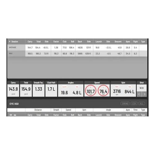 - Smash Factor - Quantifies the efficiency of impact between the club face and the golf ball. It is calculated by dividing the speed of the ball by the speed of the club head at impact. A higher smash factor indicates a more efficient transfer of energy from the club to the ball, typically resulting in greater distance and accuracy.