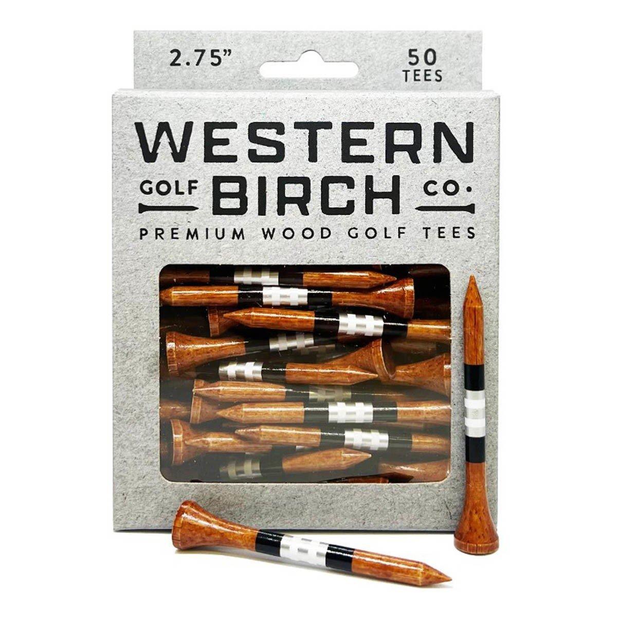 The Western Birch 2 3/4" Bamboo Golf Tees are the perfect choice for any golfer. Made from natural bamboo, these tees are lightweight and durable, providing superior performance and lasting quality. The unique shape of the tees helps to reduce drag and provides maximum launch, giving you a smooth, consistent swing every time. Plus, the tees are eco-friendly, so you can feel good about your purchase. Whether you're a beginner or an expert, you can trust the Western Birch 2 3/4" Bamboo Golf Tees to give you the best game possible. Make the switch today and start experiencing the difference for yourself! Western Birch Signature golf tees are made from only premium bamboo material. Designed with a wider shank to offer additional strength & durability and finished with a handsome stripe design.