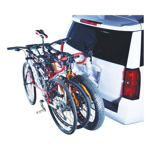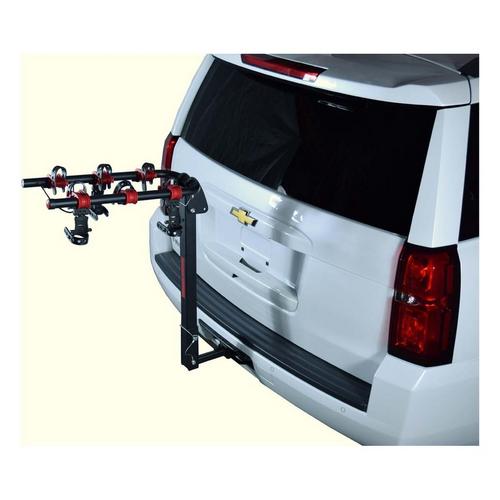 The Runway MPG2130 HM3-OS hitch mount is an excellent value and feature rich. Oversized steel tubing and soft anti-sway cradles securely support the bikes. The arms fold down when not in use and the mast can quickly be tilted back to gain access to the hatch or trunk. The integrated cable lock provides theft protection and the webbing strap included with each kit helps reduce sway during hard braking. Compatible with both 1 ¼" and 2” receivers. Includes Lifetime Limited Warranty.