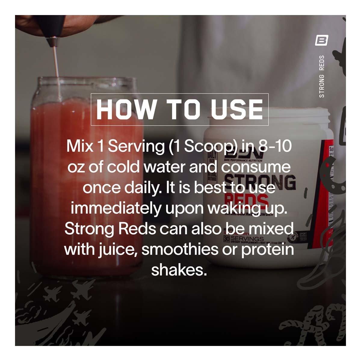 Boost your overall health and wellness with the BPN Strong Reds Superfood Powerhouse Powder. This superior formula is packed with a potent blend of fruits, antioxidants, and digestive enzymes designed to enhance your vitality and immune function. With a delicious berry flavor, it's a tasty and effortless way to incorporate more essential nutrients into your daily routine. Enjoy a scoop of this superfood powerhouse in your morning smoothie or pre-workout drink for an energy and health boost you'll feel throughout the day. Experience the difference of premium nutrition with BPN Strong Reds.