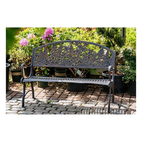 Quickly becoming a Painted Sky bestseller, the Cast Iron Wildflower Bench features a variety of lilies, lupines and other wildflowers in a stunning cast iron bench back. Finished with a bronze powder coat and hand painted gold highlights.