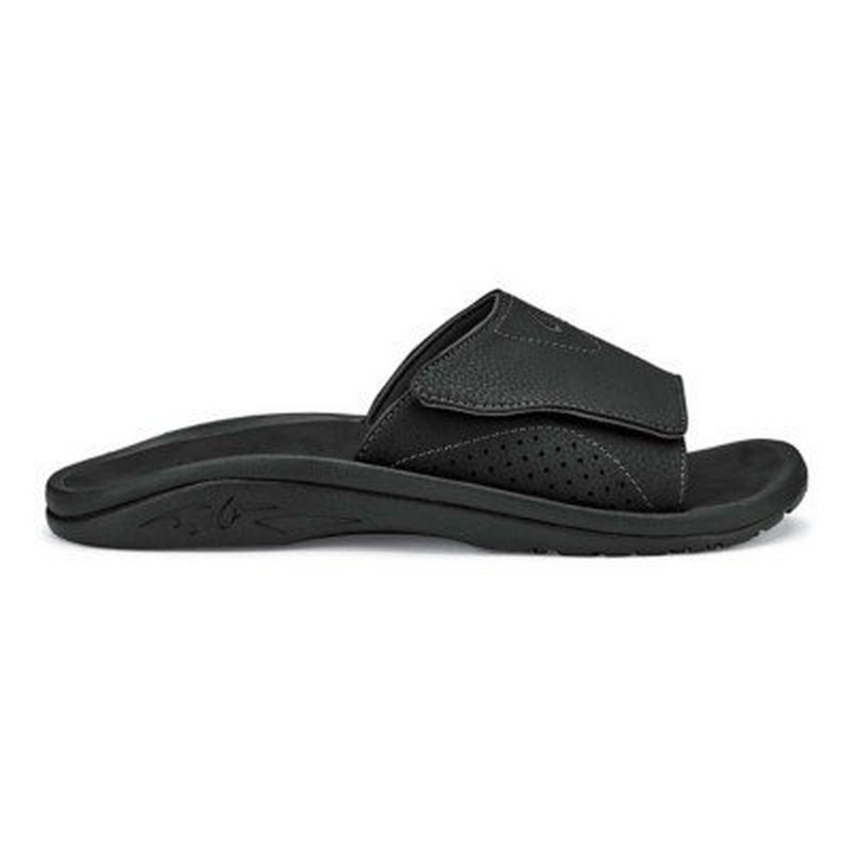 The Men's Olukai Nalu Slide Sandals are so easy and comfortable, you'll never want to take them off! These men's slide sandals feature an adjustable, water-resistant strap that fits all widths of feet comfortably and dries quickly. The rubber sole is non-marking, and the midsole is compression molded. These slides offer Olukai's famous comfort with the ease of a slip-on sandal. Step into warmer weather with the Men's Olukai Nalu Slide Sandals.