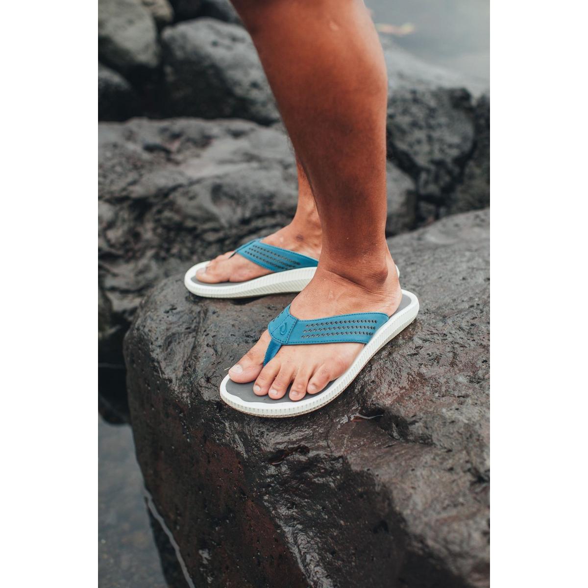 The OluKai Ulele Men's Flip Flop Sandals are your water-friendly summer sandals. These men's sandals feature a soft, synthetic upper that offers durability and comfort, while the drop-in ICEVA footbed offers support. With a rubber outsole, these OluKai flip flops provide grip and traction making them ideal for the pool or beach. Plus, the liner dries quickly to reduce irritation. Be ready for the next beach or pool party with the OluKai Ulele Men's Flip Flop Sandals.