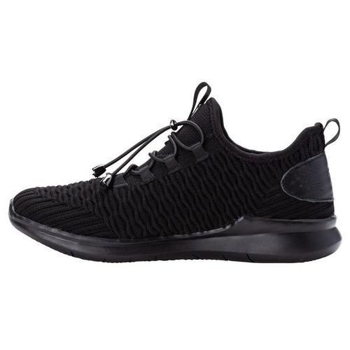 One piece stretch knit mesh with knit-in texture detailing and external leather heel counter support. Arch supporting high density Open Cell PU foam allows air to flow for a cooler, healthier footbed. Thermally controlled rubber provides long lasting responsive cushion that keeps feet energized.