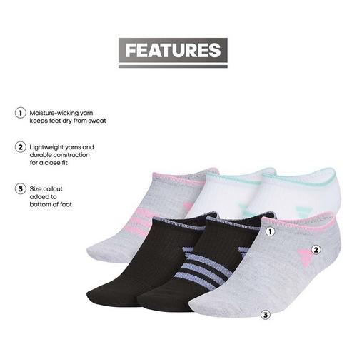 Girls' adidas Superlite 3.0 Light Cushion 6 Pack No Show Socks