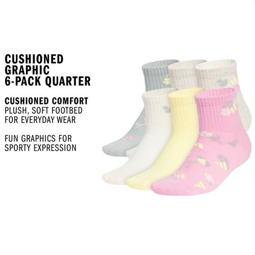 Youth Girls' adidas Graphic 6 Pack Quarter Socks