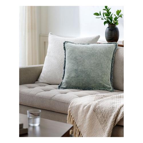 The Surya Washed Cotton Velvet Pillow offers a soft, luxurious feel with a washed velvet fabric and subtle, faded colors. Its elegant texture and relaxed look make it a perfect addition to any cozy, modern, or transitional space.