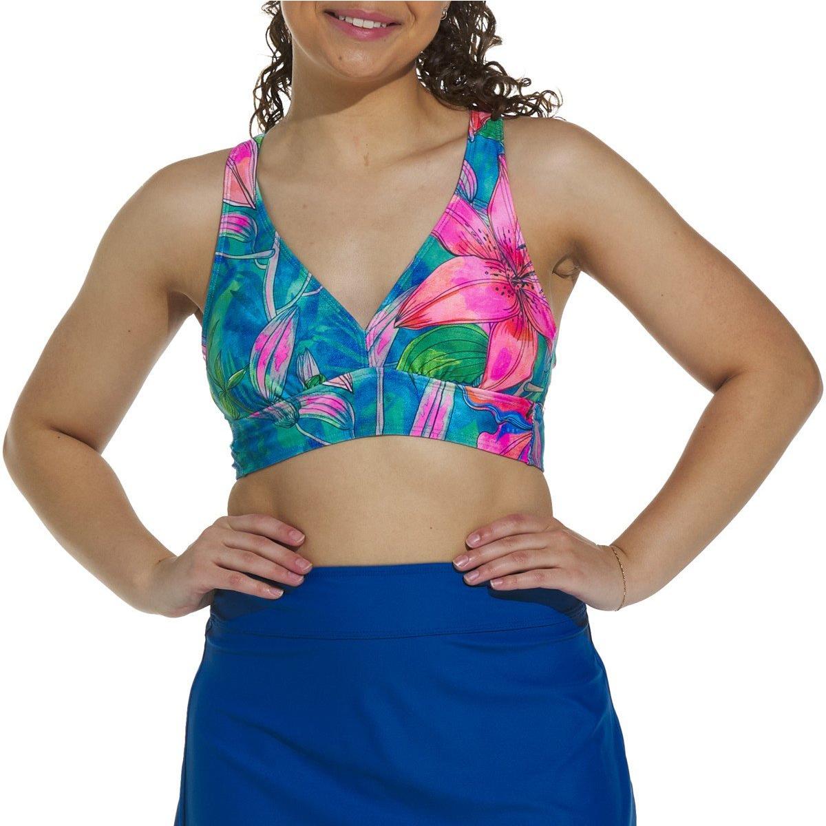 The Next Core Restore Longline Swimsuit Top is a sporty silhouette with supportive styling designed to move with the body. This bra has extra-stretch fabric, an adjustable strappy back tie, and removable soft cups. This longline bra is available in B/C and D cup sizes.