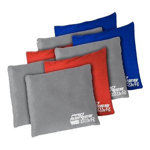 The Wild Sports Pro Series Cornhole Bean Bags will get you ready for the competition. This set includes 8 bean bags coming in colors grey, blue, and red. Featuring premium cotton on one side and suede fabric on the other side, you'll be able to land those tough shots. The Pro Series Bean Bags have all-weather filling that ensures lasting durability.