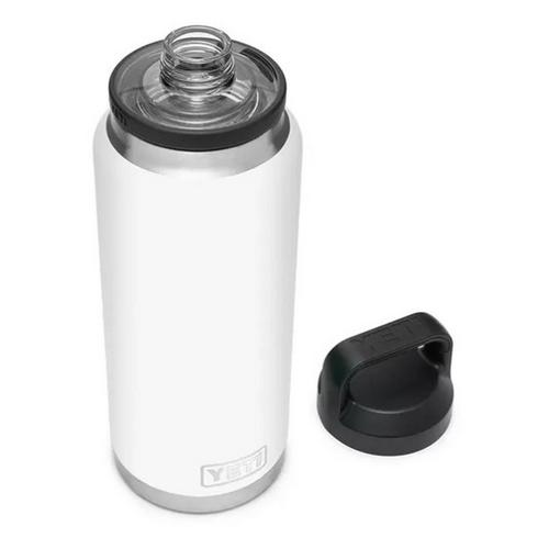The YETI 36 oz. Rambler Bottle with Chug Cap will keep you hydrated on the trails, at work, or really wherever you go! Designed for hot or cold drinks, the YETI 36 oz. Rambler bottle features a convenient carrying handle top that easily twists off to expose the drinking spout for controlled gulps on the go. For easy refilling and adding ice, the YETI 36 oz. Rambler bottle has a wide mouth top, while the dishwasher safe construction makes for easy cleaning. For your next reusable water bottle, check out the YETI 36 oz. Rambler Bottle with Chug Cap.