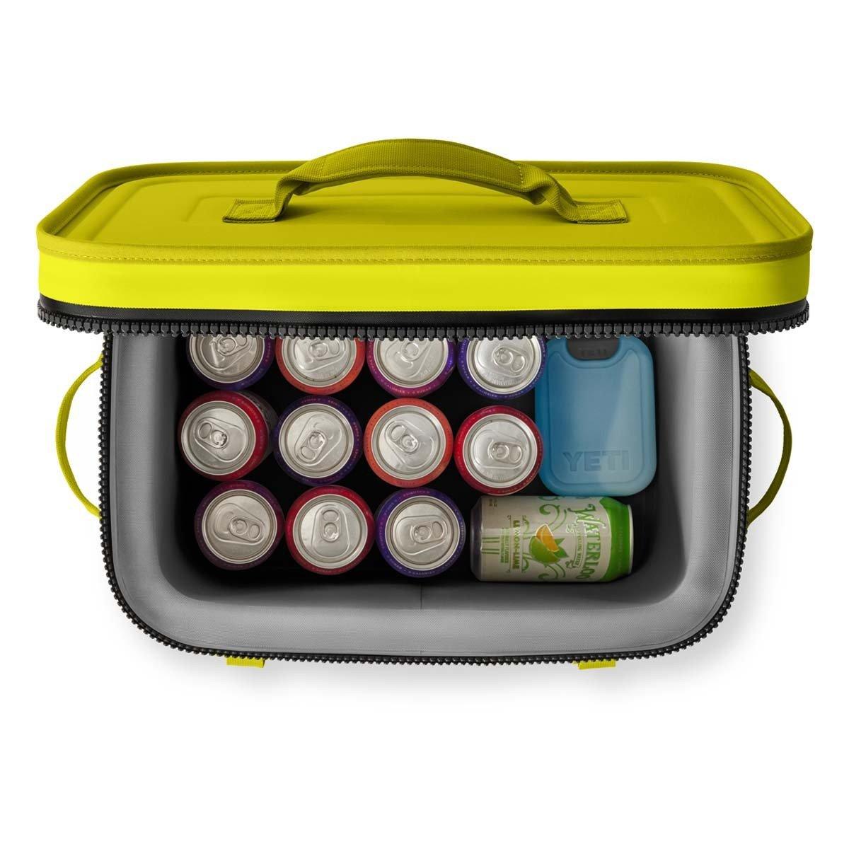 The YETI Hopper Flip 18 Cooler is ready for any adventure. In addition, the YETI Hopper Flip 18 is waterproof and is easy to transport with its padded carrying strap and handle. The spotlight is turned onto the wide-mouth opening of the YETI Hopper 18 that makes it easy to load and access all your food and drinks. Plus, you get YETI's Hydrolok zipper technology that keeps the YETI Hopper 18 cold for days. You can even hang the YETI Flip 18 virtually anywhere with the Hitchpoint grid hooks. As an added bonus, the YETI Hopper Flip 18 can hold up to 20 cans of beer with ice or 24 lbs of ice alone. Take on new adventures with the extremely durable and effective YETI Hopper Flip 18 Cooler!