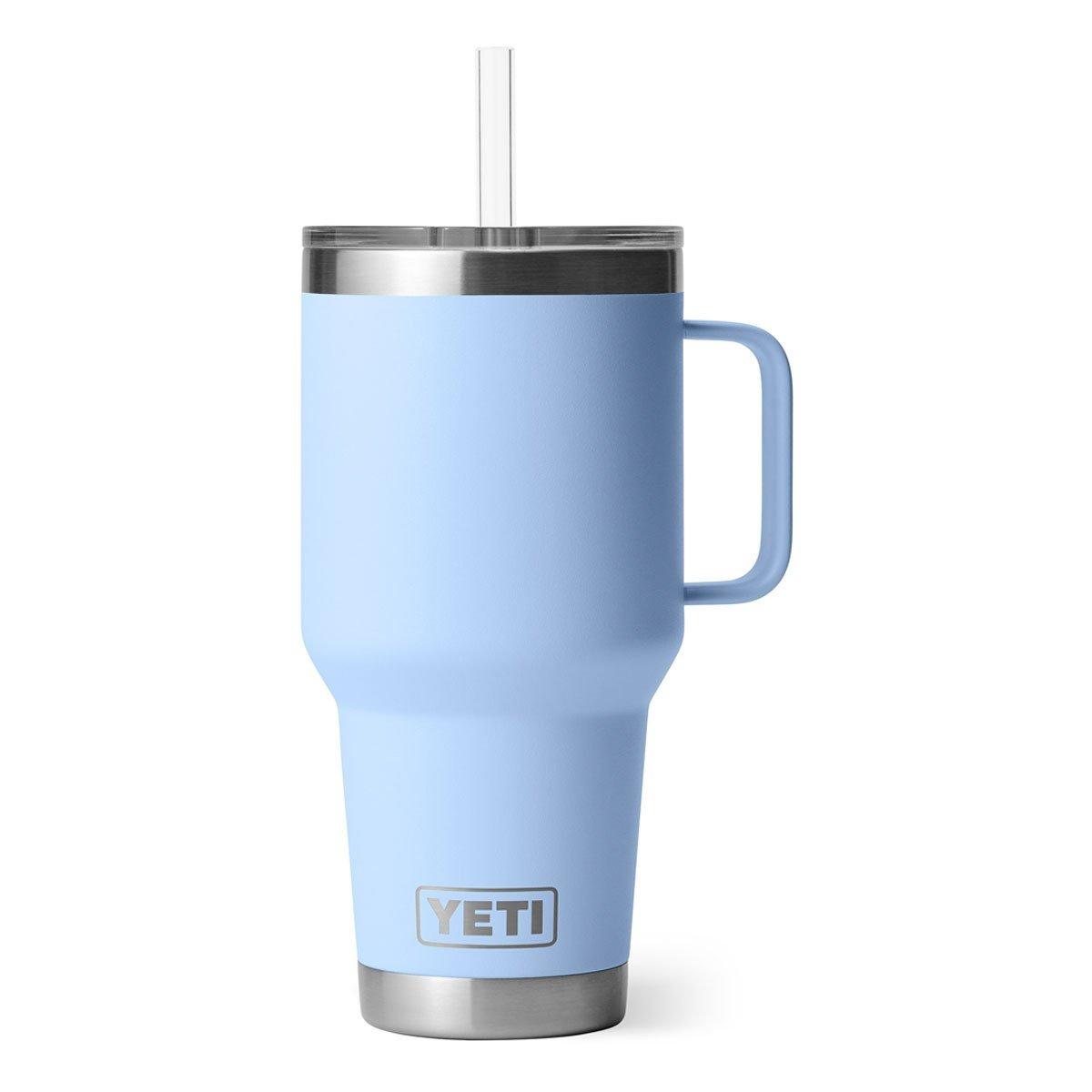 The YETI Rambler 35 oz Mug with Straw Lid will be your next go-to when on the go throughout the day. Featuring the NO SWEAT design, the YETI Rambler 35 oz. Mug prevents condensation, keeping your hands dry even with the coldest of cold drinks, while the double-wall vacuum insulation keeps your drinks hot or cold for hours. Plus, the 18/8 stainless steel construction means it's built to last and is dishwasher-safe. To enhance convenience, the YETI Rambler 35 oz. Mug is cup holder compatible and comes with a reusable straw.