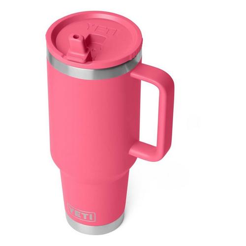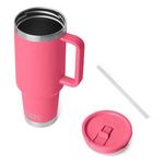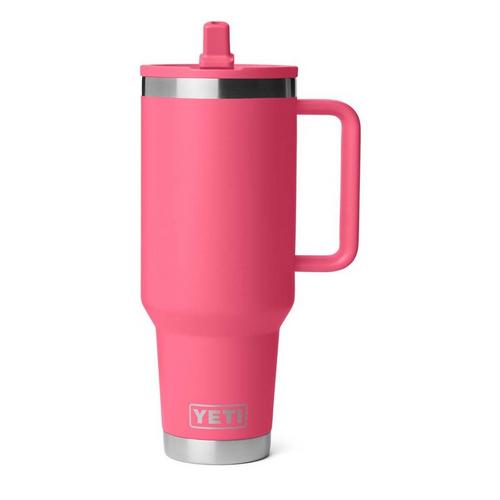 Keep water locked in with the colossal YETI® Rambler® 40 oz. Travel Straw Mug. Built with a quick-flip straw lid and comfortable handle, staying hydrated on the go is not a problem. Plus, it’s 100% leakproof when closed so you can trust it to keep your pack dry, your gear safe, and your front seat spill free. Just fill it up, twist it closed, flip down the straw, and toss it anywhere. And with several possible lid positions, it’s great for righties and lefties.