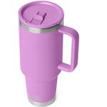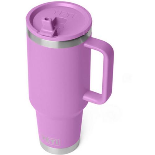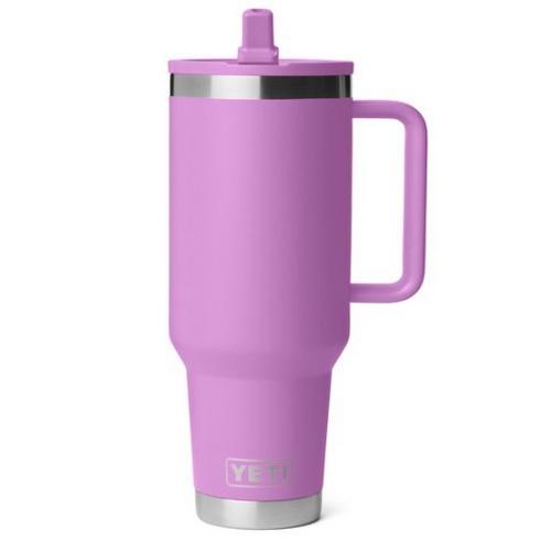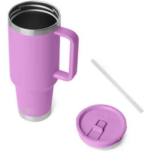 Keep water locked in with the colossal YETI® Rambler® 40 oz. Travel Straw Mug. Built with a quick-flip straw lid and comfortable handle, staying hydrated on the go is not a problem. Plus, it’s 100% leakproof when closed so you can trust it to keep your pack dry, your gear safe, and your front seat spill free. Just fill it up, twist it closed, flip down the straw, and toss it anywhere. And with several possible lid positions, it’s great for righties and lefties.