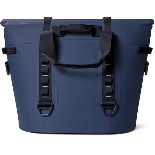 The Hopper® M30 Soft Cooler is YETI's tough-as-nails soft cooler that can carry 42 cans (only) of your favorite beverage (or 32 pounds of ice). Their signature wide-mouth opening has been reengineered to stay open with ease and close tight with a gentle push. A strip of ultra-strong magnets locks in cold while Quick-Release Buckles provide extra security through choppy water or when riding through rough terrain in the bed of a truck.