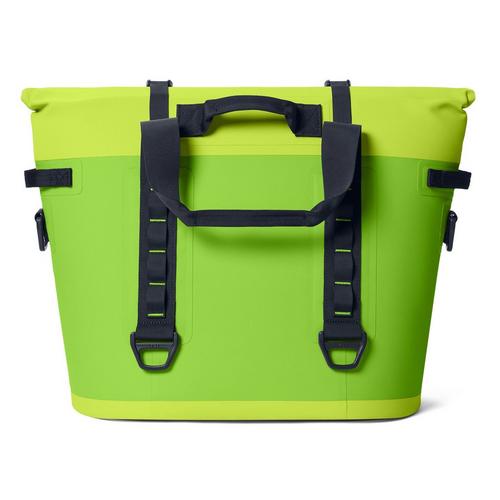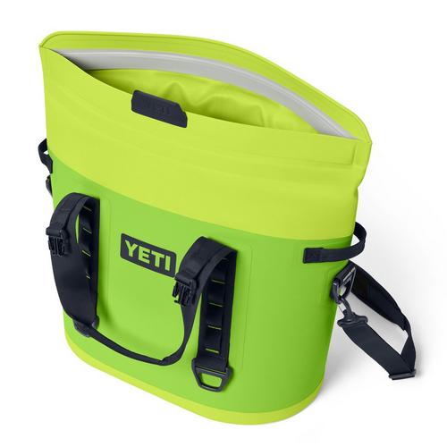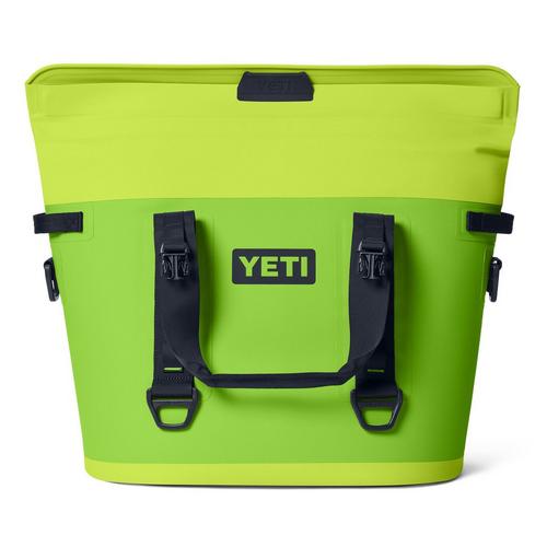 The Hopper® M30 Soft Cooler is YETI's tough-as-nails soft cooler that can carry 42 cans (only) of your favorite beverage (or 32 pounds of ice). Their signature wide-mouth opening has been reengineered to stay open with ease and close tight with a gentle push. A strip of ultra-strong magnets locks in cold while Quick-Release Buckles provide extra security through choppy water or when riding through rough terrain in the bed of a truck.