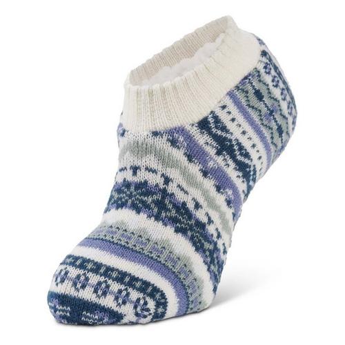 Women's Sof Sole Double Layer Blue Nordic Pattern Slipper Socks