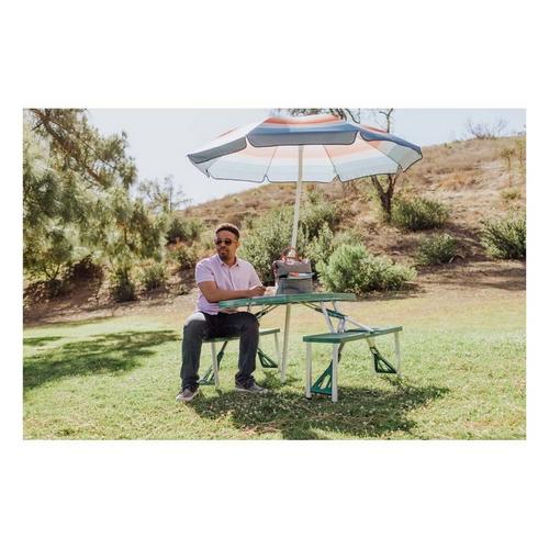 {"reviews":[],"offset":0,"limit":10,"total":0,"gtin":"999672110554"}"Full Description:\nWant a pop-up picnic anywhere? The Folding Picnic Table is made just for you.\n\nFeatures:\n\u003cul>\n\u003cli>Portable seating for four with integrated table in a folding compact\u003c/li>\n\u003cli>Maximum weight capacity is 250 lbs. per bench and 55 lbs. for the tabletop.\u003c/li>\n\u003cli>Sturdy ABS plastic table and molded polypropylene seats with a basket weave design\u003c/li>\n\u003c/ul>\n\nSpecifications:\n\u003cul>\n\u003cli>1 Portable Picnic Table with Four Seats (54" x 33.7" x 26.25") Care Instructions: Surface wash with a damp cloth and mild soap. Dry thoroughly.\u003c/li>\n\u003cli>BUILT TO LAST Lifetime Guarantee\u003c/li>\n\u003c/ul>\n"