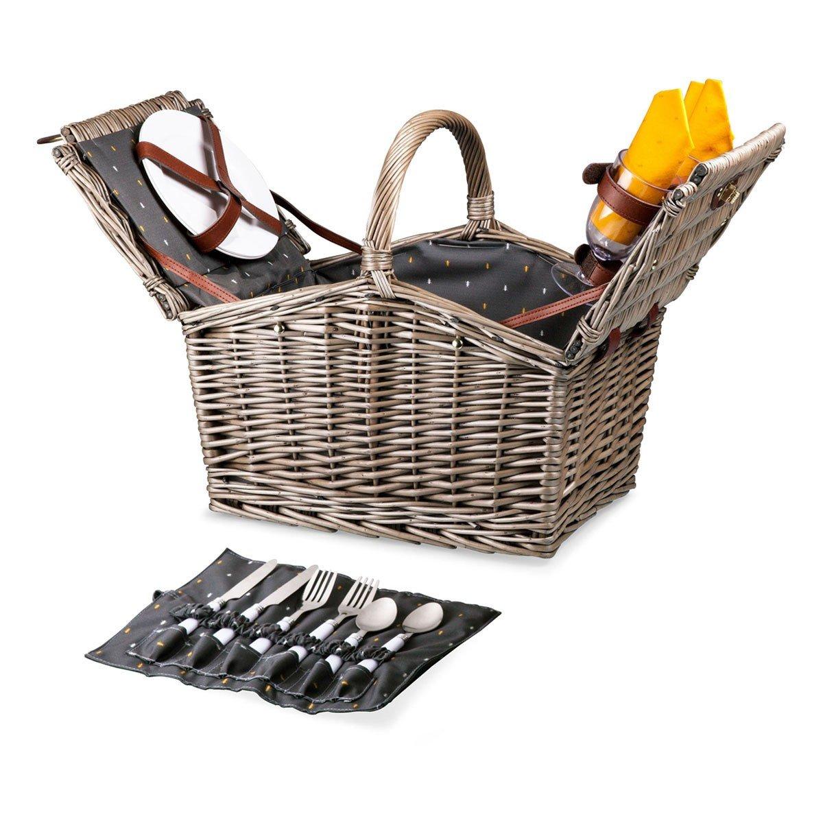 Opt for vintage charm with the Piccadilly Picnic Basket, Picnic Time’s romantic, English-style wicker picnic basket set for 2. With wicker handwoven-willow construction, double-lid design, and delightful red gingham lining, this large picnic basket certainly looks the part of the ideal wedding or anniversary gift for couples. But the fully-lined interior really delivers on that promise with a picnic set including roll-up silverware pouch, plates, plastic wine glasses, and corkscrew, all securely strapped to the undersides of the lids - leaving plenty of room for your favorite foods, wine, and cheese. Grab the integrated handle in one hand, your sweetheart's in the other, and head outdoors with this classic, romantic picnic basket for two.