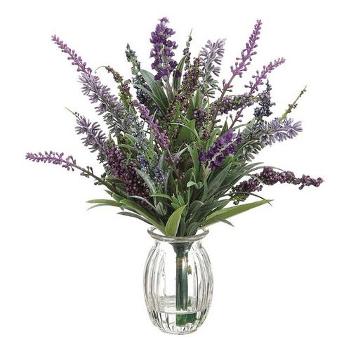 The Allstate Floral 11" Lavender in Glass Vase features realistic, vibrant lavender stems in a sleek glass vase. A perfect addition to any space, this low-maintenance floral arrangement adds a calming, natural touch to your décor.